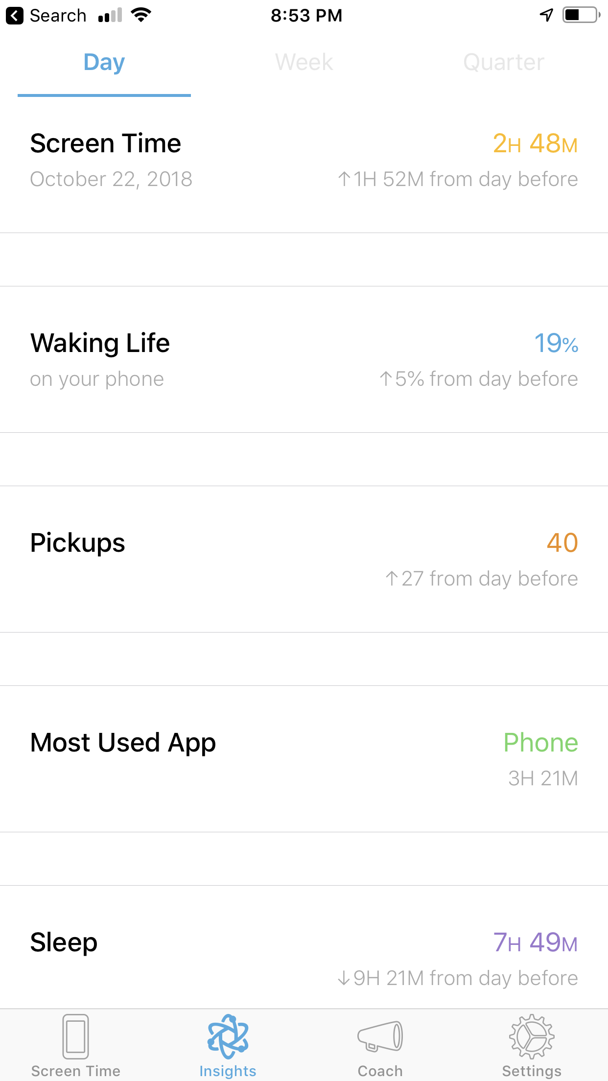 It turns out I get plenty of sleep – averaging 7-8 hours a night – awesome right!?! It also turns out that I spend almost 5 hours a day on my phone…I thought I would have negative feelings about this, but it turns out I don’t. Let me explain. I work at home and with my time divided between Digital Chicks Media and our blog, it makes sense to me that I would be spending the equivalent of a day’s work on my phone, aka my computer on the go. With social media and engagement at the core of what I do, I guess it is not surprising, but there is a silver lining to all this information.