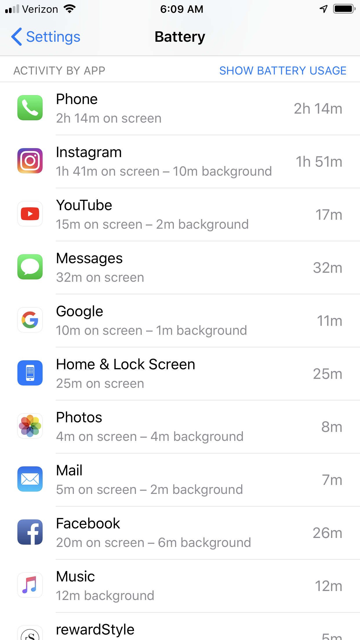 Launch Settings from your Home screen. > Tap on Battery. > Wait a moment for Battery Usage to populate. > Tap on the Show Detailed Usage button to get a breakdown of foreground and background power usage. > Tap on Last 7 Days to get a broader look at power consumption over time.